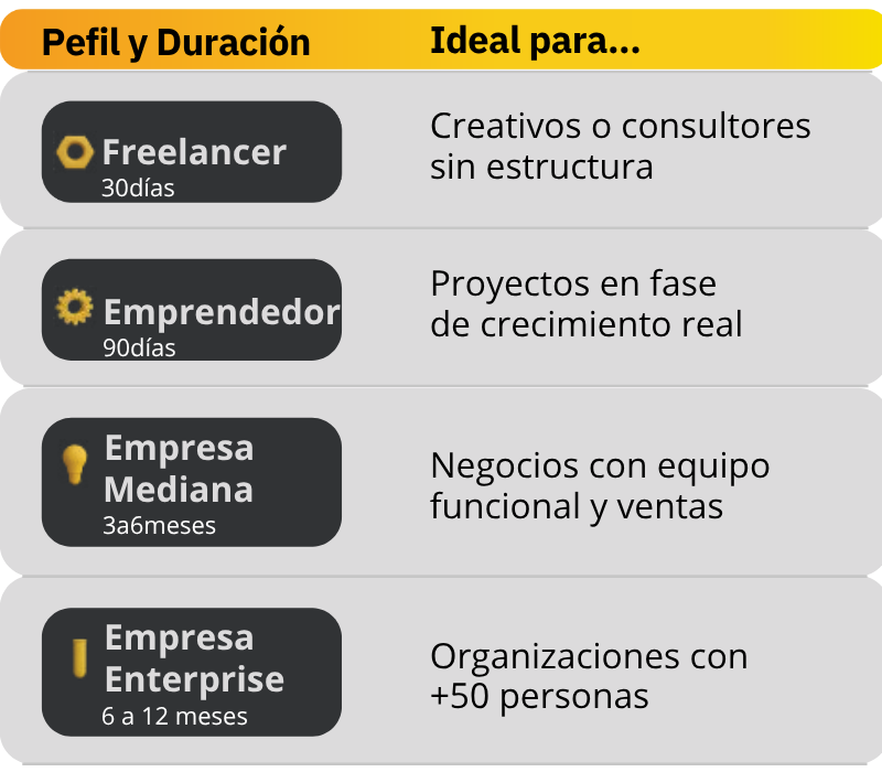 *Todos los planes incluyen toolkit, sesiones de acompañamiento y documentación de proceso.